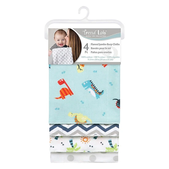 Trend Lab Deluxe 4-Piece Dinosaur Flannel Burp Cloths Multi
