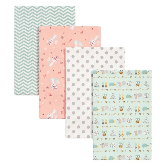 - Features stylish patterns including forest animals, Aztec and teepees, dots, baby foxes, prairie flowers, and a chevron print in coordinating pastel color palettes