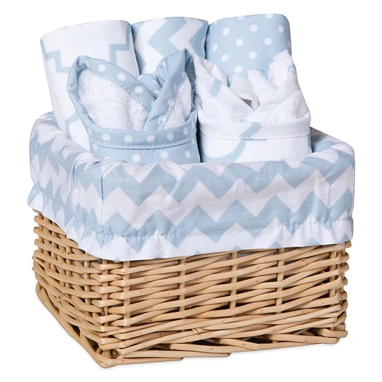- Trend Lab's 7-Piece Feeding Basket Gift Set in Blue Sky contains the most useful items new parents need