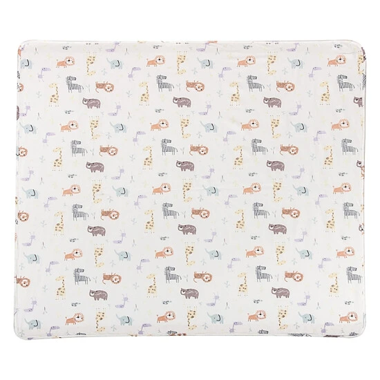 - Features an allover crayon-drawn jungle animals print in soothing colors