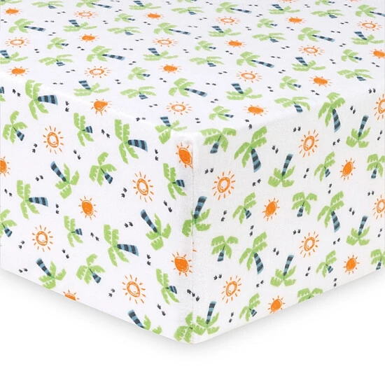 - Features an adorable pattern consisting of palm trees, suns, and dinosaur tracks