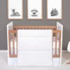 - Crib skirt: 100% cotton; 28" W x 52" L x 14" drop