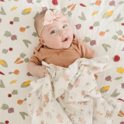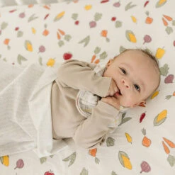 - Bring the outdoor garden inside with Trend Lab’s Farmers Market flannel crib sheet