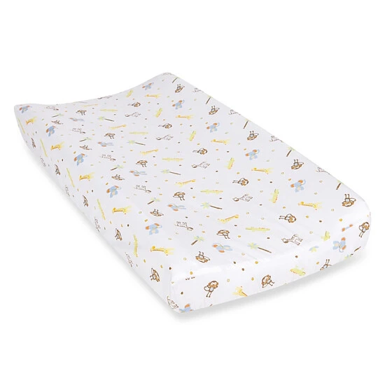 - Change your little adventurer on Trend Lab's Jungle Fun Animals Changing Pad Cover, featuring a sweet scatter print of giraffes, monkeys, elephants, and gators