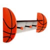 - Shelf sides are ball shaped, backboard and shelf are green, and pegs are white with football ends