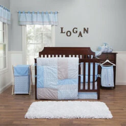 - The Logan Bedding Collection by Trend Lab combines light blue and opal grey with white accents