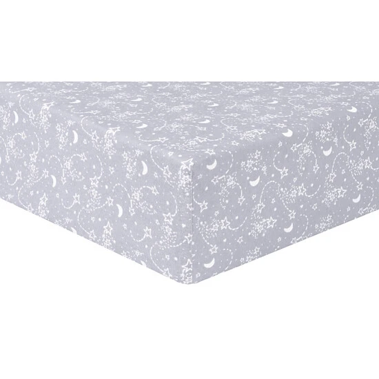 Trend Lab® Outer Space Moon And Stars Deluxe Flannel Fitted Crib Sheet In White/Grey