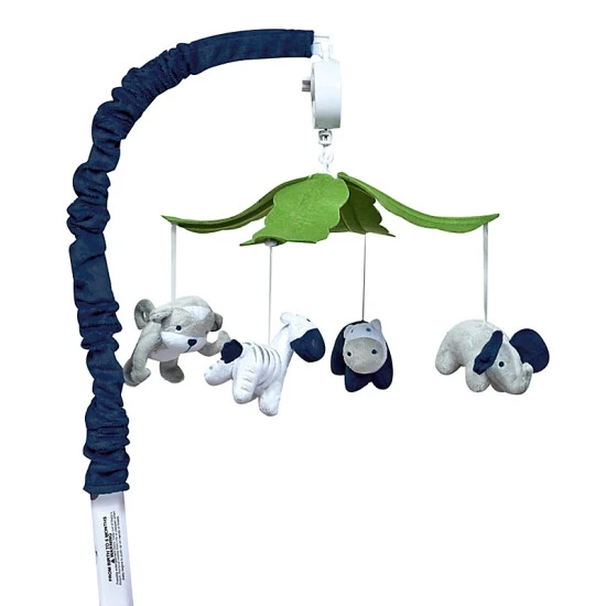 - The Perfectly Navy Musical Mobile from Trend Lab features a leaf canopy with a plushy monkey, hippo, zebra, and elephant underneath