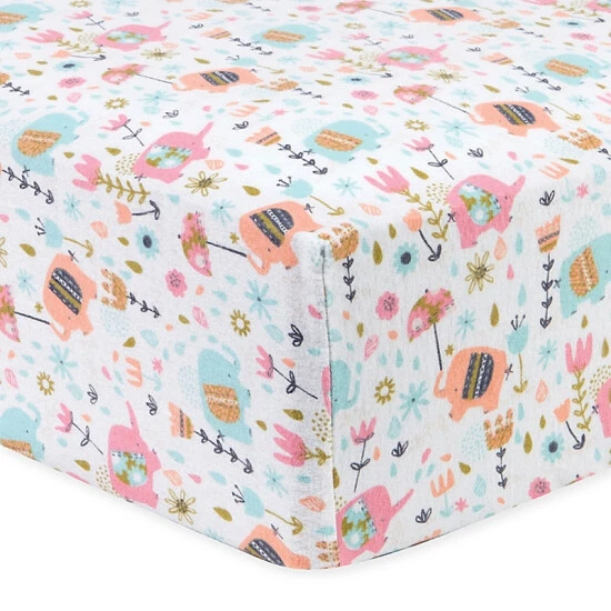 Trend Lab® Playful Elephants Flannel Fitted Crib Sheet Pink