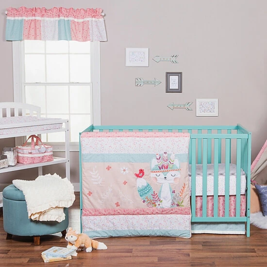 - Collection includes 3-piece crib bedding set, changing pad cover, crib sheet, and more