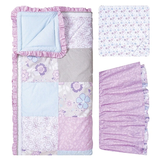 - The Grace Crib Bedding Collection from Trend Lab features soft, understated colors like lavender, light blue, and grey with a fun mix of prints for a charming homespun stylishness